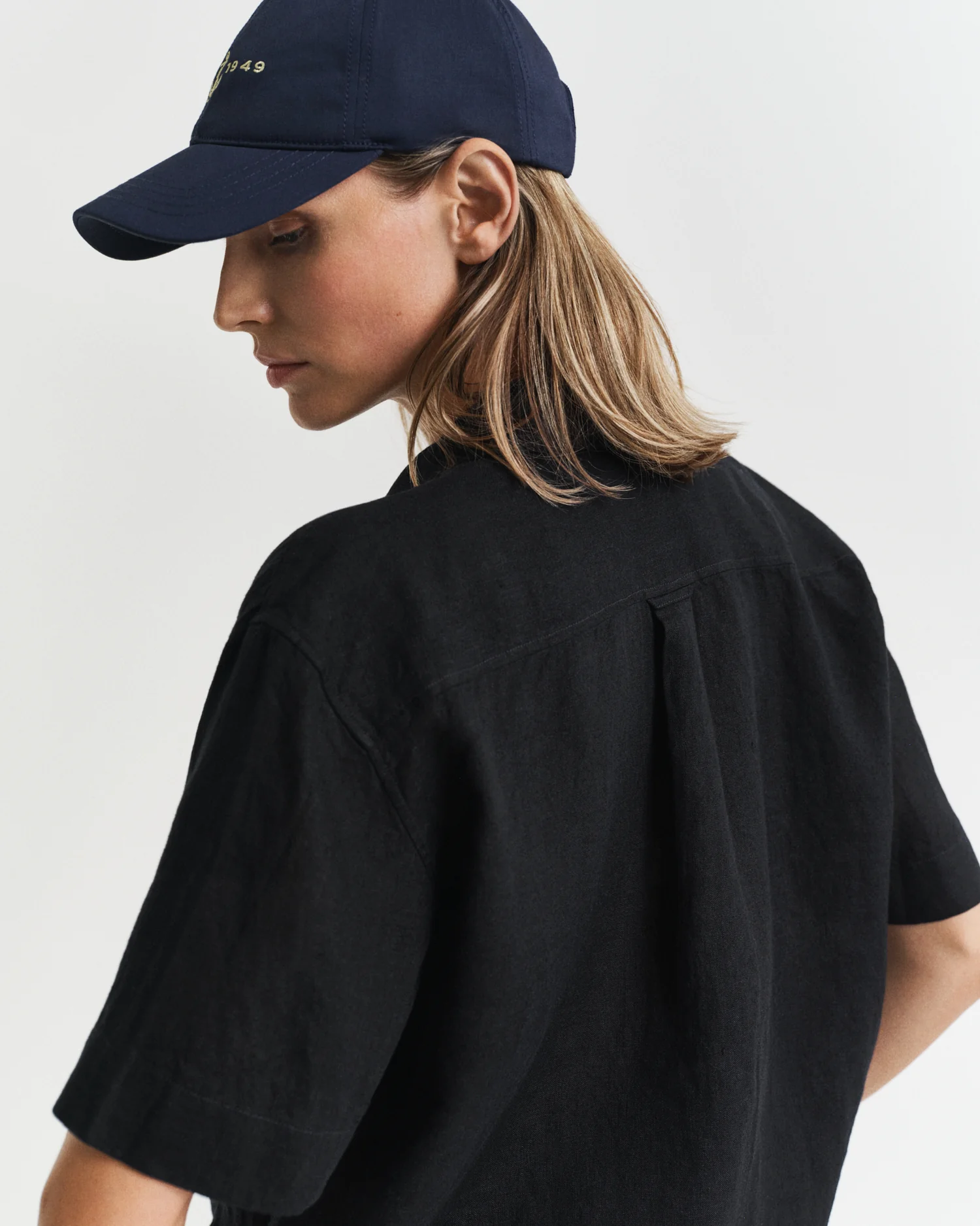 Made from certified European flax linen, a naturally breathable and lightweight fiber, this relaxed-fit shirt has a crisp yet casual look. Designed with short sleeves for the warmer, summer months, it features a point collar, curved hem and a buttoned French placket. Other details include recycled polyester buttons and a box pleat with our innovative locker loop at the back. This garment is intended for a relaxed fit. For a closer fit, we recommend sizing down.